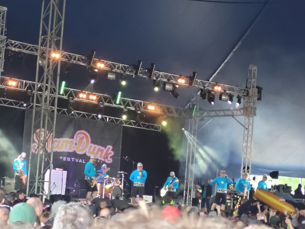 This was the band’s third Slam Dunk appearance – and first time in the UK since the passing of long-time trumpeter Matt Stewart – and this was a super tight set, with a familiarly large sax and brass combined section.